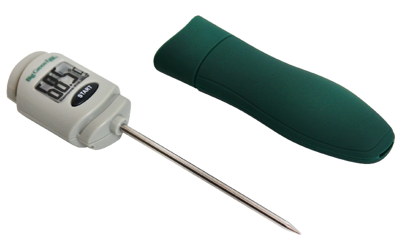 Je vaše jehněčí stehno správně růžové? Hovězí je přesně medium- rare? S digitálním kapesním teploměrem (Digital Pocket Thermometer) vždy připravíte dokonalé maso i drůbež. Do 5 až 6 sekund se teplota zobrazí na displeji (ve stupních Fahrenheita F° i ve stupních Celsia C°). Při dosažení požadované teploty teploměr zapípá. Tento digitální teploměr měřící teplotu ve středu surovin je velmi malý, takže se vám klidně vejde do kapsy zástěry. A když už ho nepotřebujete, jednoduše ho zasunete do ochranného pouzdra.