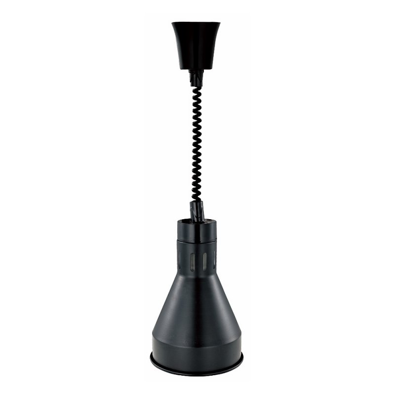 Závěsná lampa v provedení matná černá. Flexibilní napájecí kabel s fixací délky 450 mm až 1500 mm, integrovaný vypínač, včetně infra žárovky 250 W.