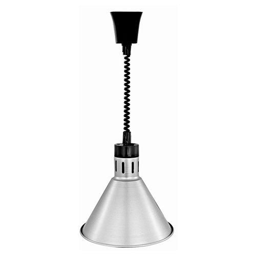 Závěsná lampa v provedení hliník. Flexibilní napájecí kabel s fixací délky 450 mm až 1500 mm, integrovaný vypínač, včetně infra žárovky 250 W.