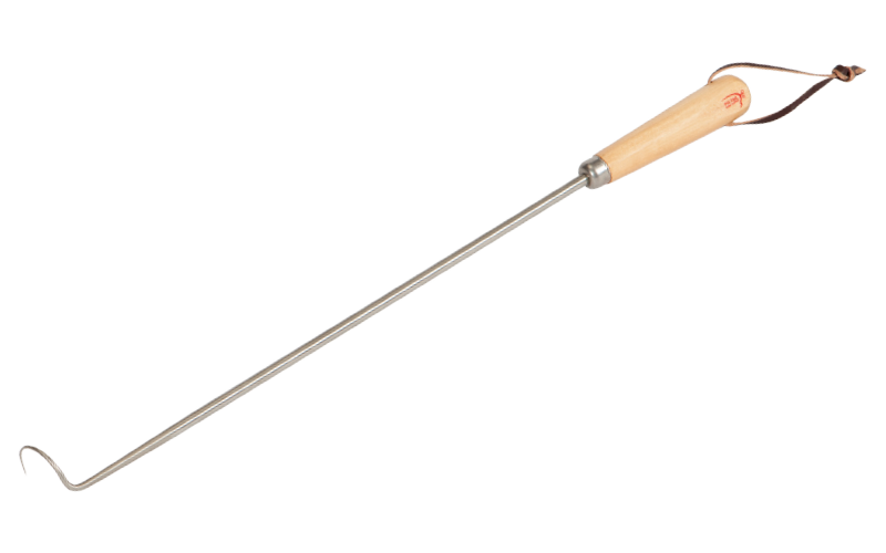 Hák Pigtail Meat Flipper je dlouhý 48 cm, je vyrobený z nerezové oceli a odolný vůči velmi vysokým teplotám. Na rukojeti je umístěná šňůrka za kterou můžete hák Meat Flipper zavěsit, když ho zrovna nepotřebujete.