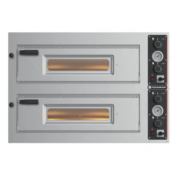 Elektrická dvou-komorová pizza pec EntryMax 8 od firmy PizzaGroup. Vybavená analogovým teploměrem, vnitřním osvětlením a dvěma termostaty pro kvalitní přípravu pizzy. Opláštění pizza pece je z kvalitní nerezové oceli. Možnost maximálního nahřátí až do 450°C. Pizza pec pojme maximálně 8 pizzy s průměrem 33 cm