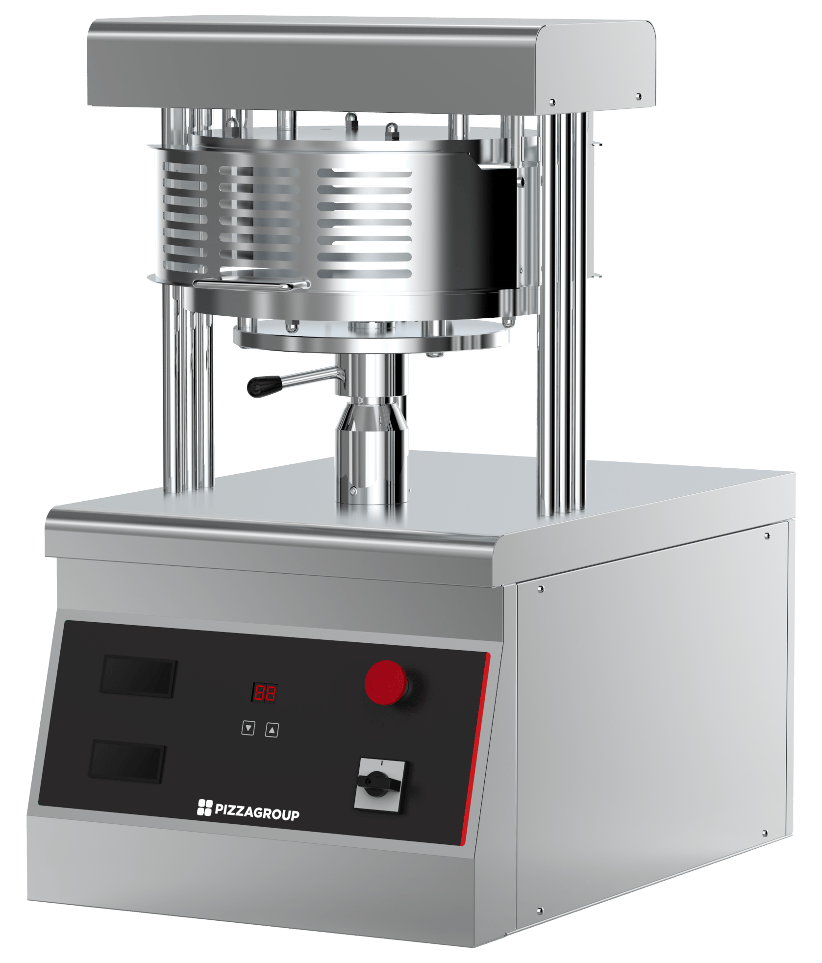 Mechanický lis na pizza těsto s nezávislým nastavením teploty pomocí dvou termostatů do max 150°C.